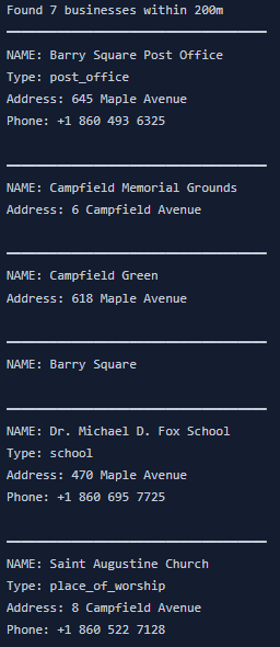 I expected Connecticut to be less densely populated, so I expanded the radius to 200 meters.